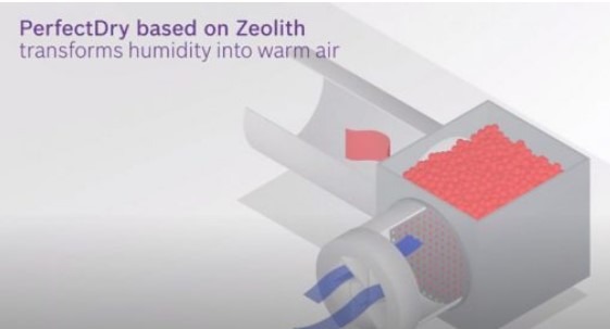 Máy rửa bát Bosch Bosch SMS8TCI01E được tích hợp sẵn chức năng sấy khô đồ rửa sau khi kết thúc chương tình bằng hạt khoáng Zeolith. Đây là công nghệ làm khô tiên tiến nhất hiện nay, có khả năng tiết kiệm điện tối đa. Một bộ phận chứa hạt khoáng được lắp đặt sẵn ở góc máy sẽ hấp thụ hết độ ẩm trong khoang khi kết thúc rửa, từ đó làm khô bát đĩa. Công nghệ này hiệu quả trên mọi loại chất liệu của đồ rửa.